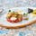 jajko w koszulce, rukola , polędwica z własnej wędzarni , pomidor, ogórek, sos z parmezanem, ser koryciński, chleb maślany -